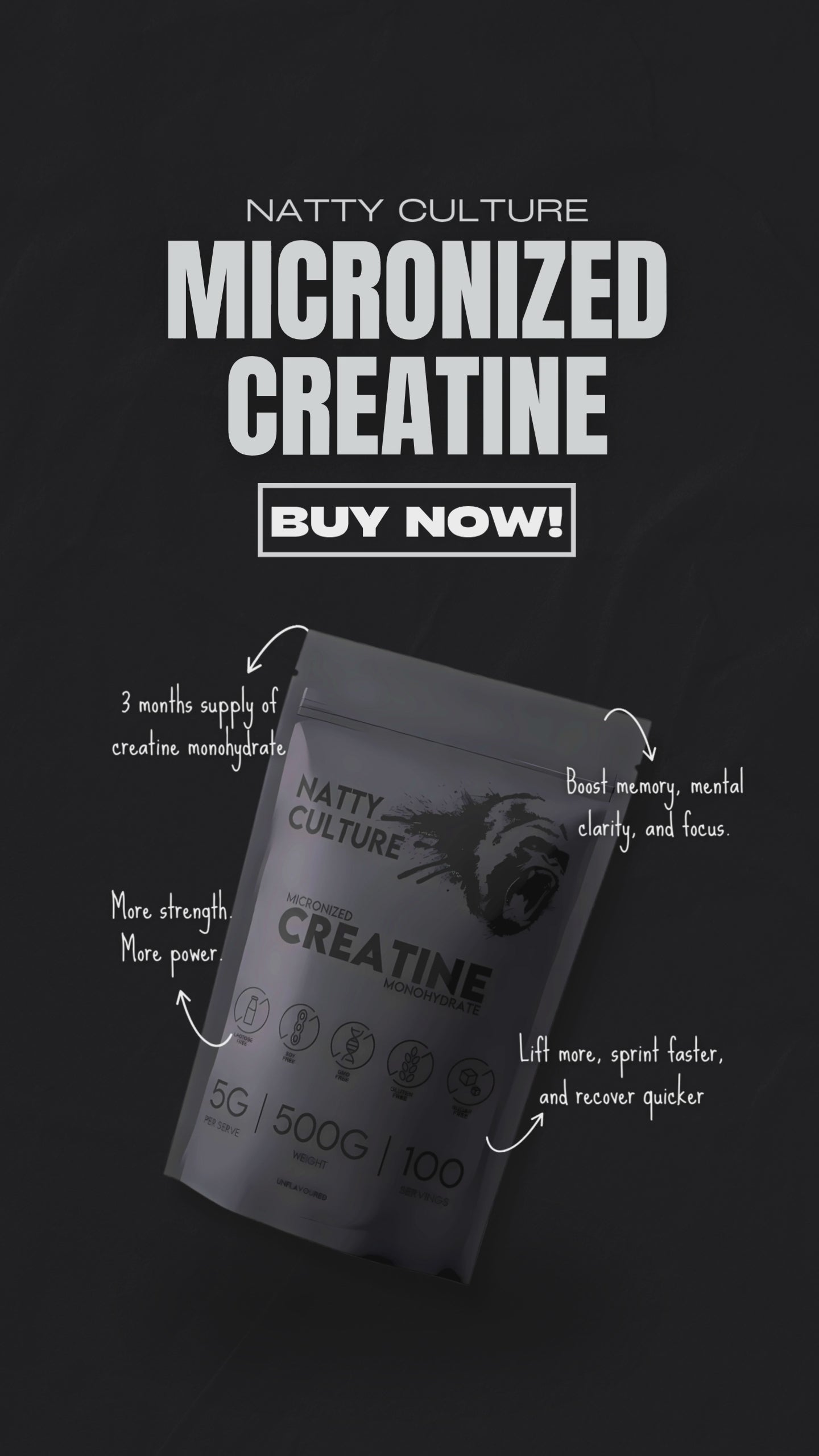 No more excuses. Natty Culture Micronized Creatine Monohydrate fuels you to hit harder, lift heavier, and recover faster. Daily use. Zero filler. All results. If you’re not growing, you’re not working. Simple. Pure. Relentless.